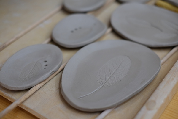 Pflanzendrucke in Ton werden zu individuellen Kunstwerken gestaltet, die nach dem ersten